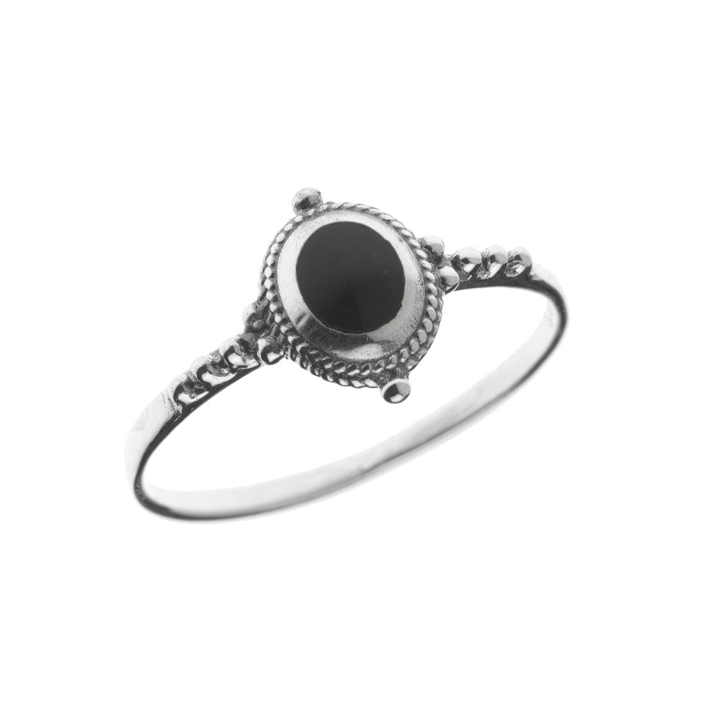 OVAL STONE WITH ROPE EDGE SETTING AND DOT DETAIL